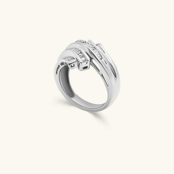 10K Diamond Baguette Crossover Statement Ring