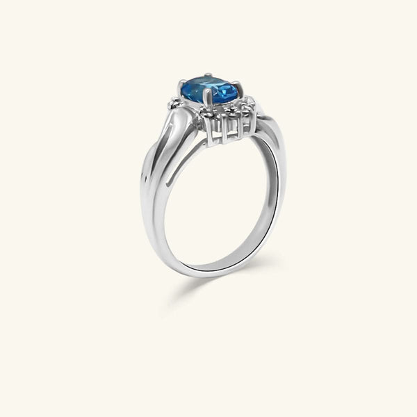 10K Oval Blue Topaz & Diamond Halo Ring