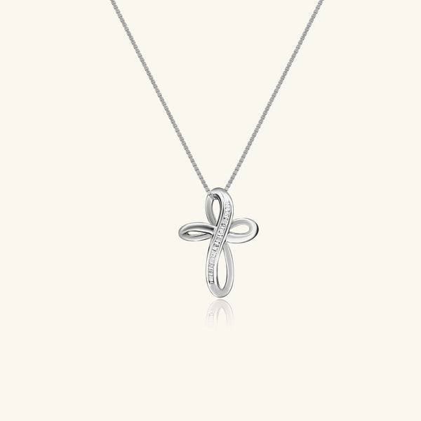 14K White Gold Diamond Infinity Cross Pendant Necklace