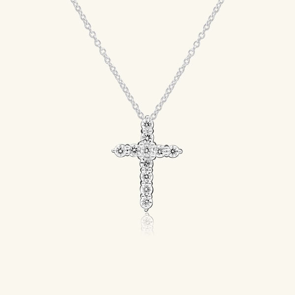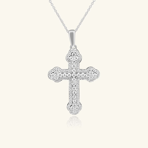 14K White Gold Pavé Diamond Cross Necklace