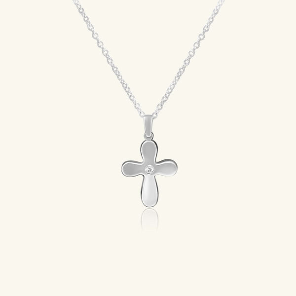 18K White Gold Diamond Accent Cross Necklace